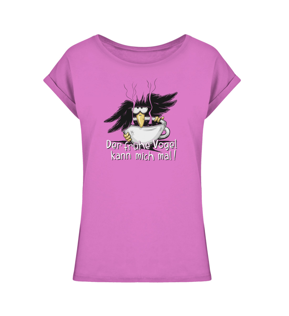 Das Motiv für den echt humorvollen Morgenmuffel und für leidenschaftliche Kaffeetrinker, der witzige schlecht gelaunte Rabe, die lustig grummelige Krähe mit dampfender Kaffeetasse.