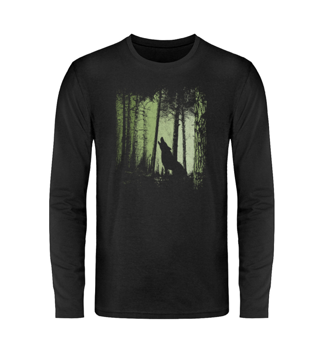 Eine schicke Illustration, die Silhouette eines heulenden Wolfes in einem dunklen Wald. Als wirklich stylischer Hingucker ein perfektes Geschenk für alle Wildtier-Wald-Fans und einsamen Wölfe!